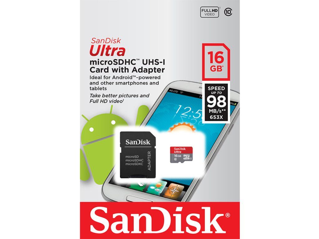 SanDisk microSDHC Ultra Android (+SD Adapter, 98 MB/s, Class10) - 16 GB