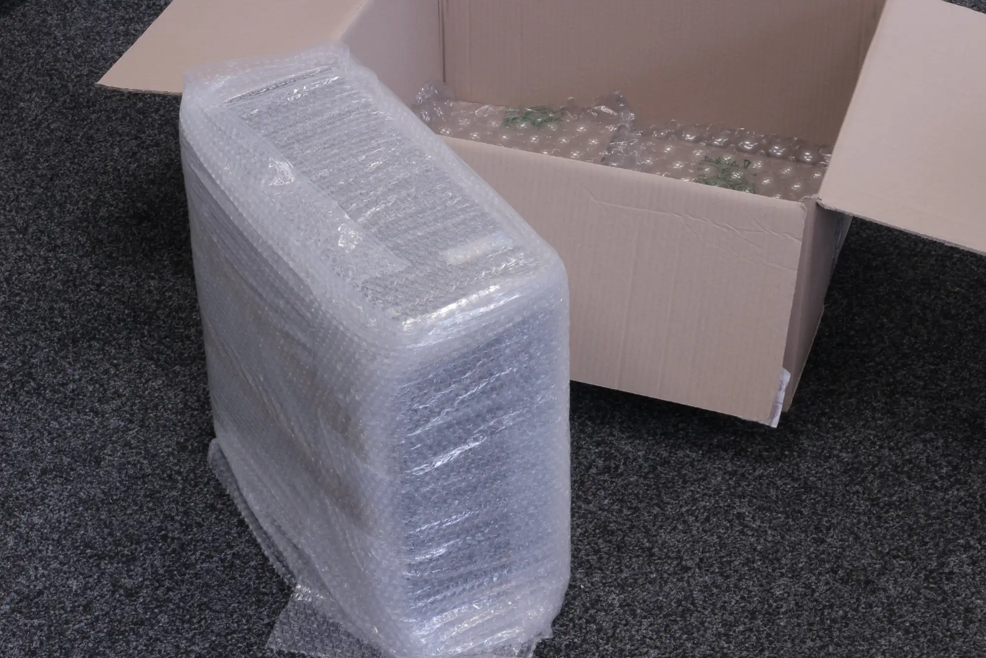 Počítače jsou naštěstí oproti monitorům mnohem pevnější. Ty balíme do několika vrstev ochranné bublinkové folie a vkládáme do krabice na jednu až dvě vrstvy pevných bublin. Vyplníme kraje, vložíme příslušenství a opět vložíme další silné bublinky nahoru krabice. Prostor by měl být dostatečně vyplněn, aby při zavírání měl lehký odpor. Tím máme jistotu, že Vám bude počítač doručen bezpečně.