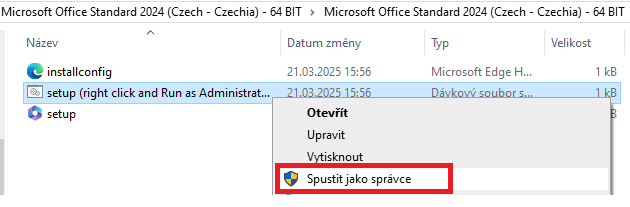 5. Klikněte pravým tlačítkem na soubor "setup (right click and Run as Administrator)" a zvolte "Spustit jako správce"