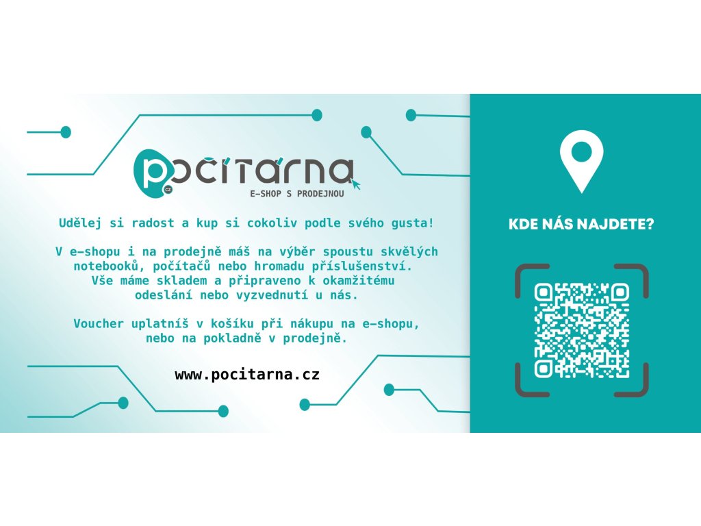 Voucher v hodnotě 500,- Kč, který lze uplatnit na nákup jakéhokoliv sortimentu, ať už v naší kamenné pobočce či na eshopu www.pocitarna.cz